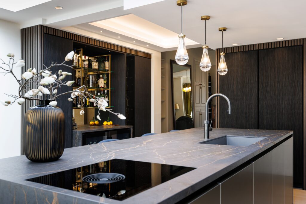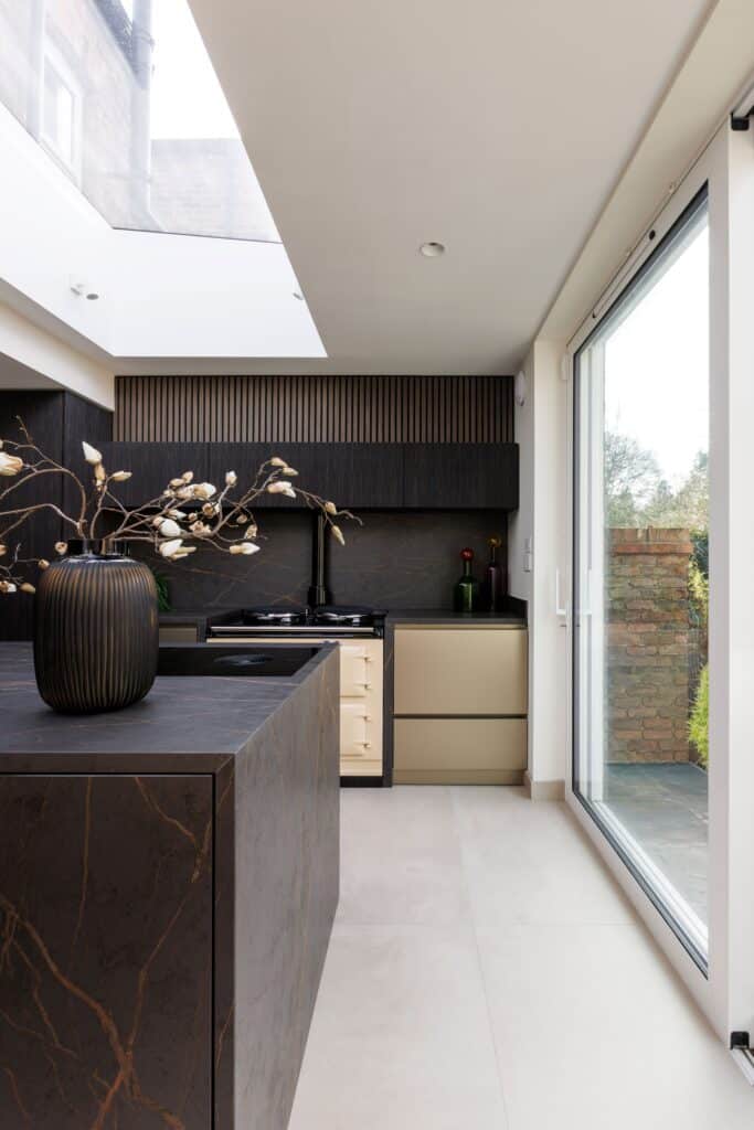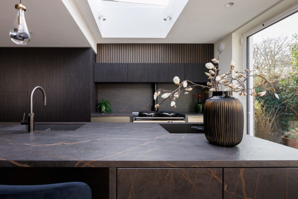 Kitchen Designs - Dark veneer and Dekton Kitchen with Aga
